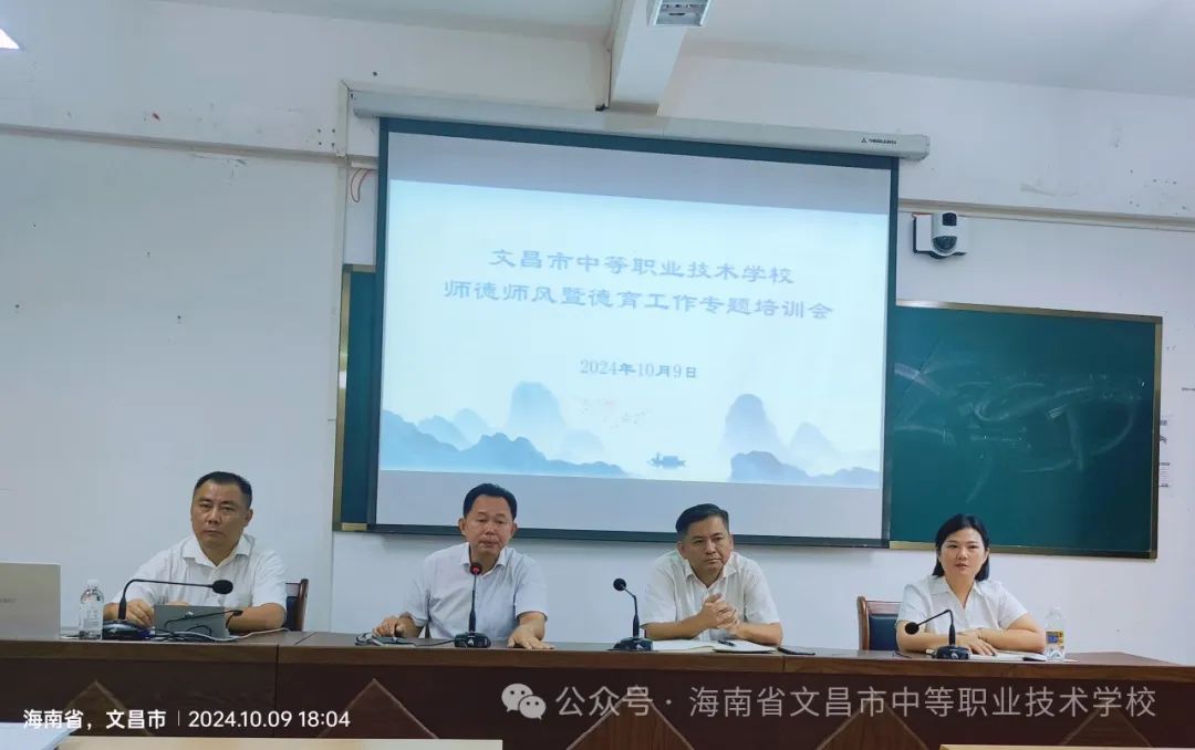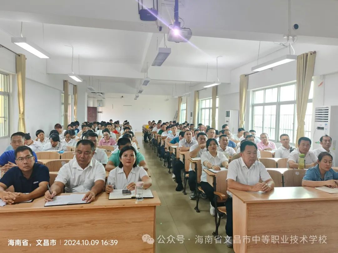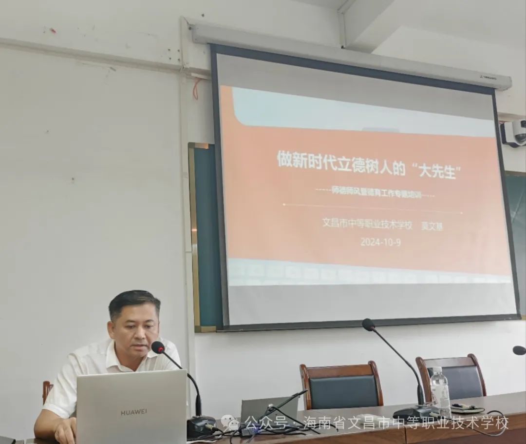 为深入贯彻落实习近平新时代中国特色社会主义思想和党的二十大精神,围绕“立德树人”根本任务, 10月9日下午,我校举办全体教职工师德师风教育暨德育工作培训会。校党总支书记张光杰出席学习会并作重要讲话,副校长莫文基做题为《做新时代立德树人的“大先生”》的专题培训,培训会由副校长符少丽主持,校领导班子其他成员及全体教职员工参加。